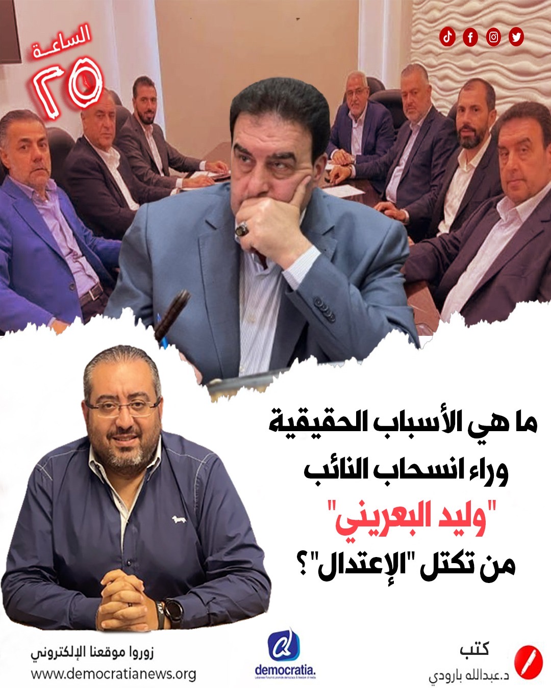 ما هي الأسباب الحقيقية وراءانسحاب النائب “وليد البعريني” من تكتل “الإعتدال”؟ للمزيد » Democratia News 06/01/2026 12:30 م