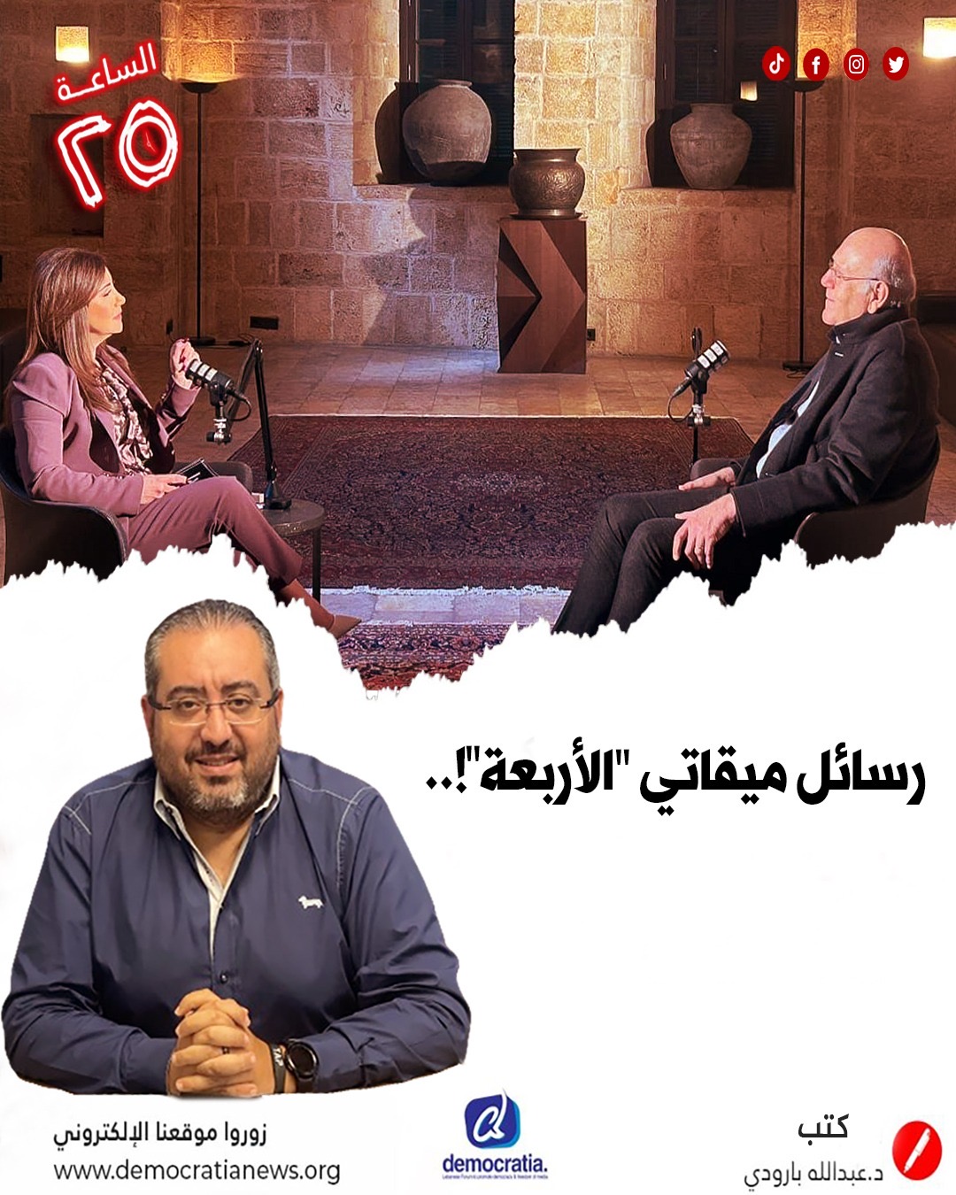 الساعة 25 ملف تسليم “المحكومين السوريين”يصل لخواتيمه السعيدة ويفتح أبواب العلاقات السيادية بين لبنان وسوريا”ديمقراطيا نيوز” تكشف تفاصيل الإتفاق ومساره !.. للمزيد » Democratia News 26/01/2026 11:03 ص رسائل ميقاتي “الأربعة” !.. للمزيد » Democratia News 17/01/2026 4:12 م اطلالة “عون” و”سلام” الإعلامية..هل حان وقت دراسة خيارات”الطائفة السُنيّة” في النظام ؟ للمزيد » Democratia News 13/01/2026 2:41 م من فهم ما قصده ميقاتي ؟.. للمزيد » Democratia News 07/01/2026 10:51 ص ما هي الأسباب الحقيقية وراءانسحاب النائب “وليد البعريني” من تكتل “الإعتدال”؟ للمزيد » Democratia News 06/01/2026 12:30 م من الأمير “طلال بن سلطان” الى”فهد الركف” وصولا “لأبو عمر”سلسلة عمليات احتيالية تكشف”خفّة” الطبقة السياسية اللبنانية !..هل تدّخل “ميكانيكي” بالإستشارات النيابية الملزمة؟.. “ديمقراطيا نيوز”تكشف الحقيقة !.. للمزيد » Democratia News 19/12/2025 5:06 م « Previous Page1 Page2 Page3 … Page5 Next » 202 094 71 961+ democratianews@gmail.com Antelias Restautants street - highway side Arz building Floor 6 On interphone : XEYOX OFFICES