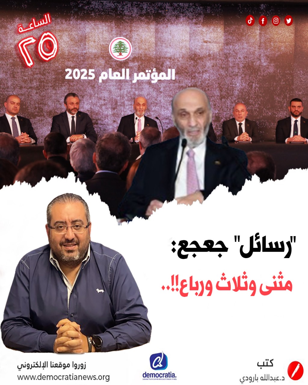 الساعة 25 ما هي الأسباب الحقيقية وراءانسحاب النائب “وليد البعريني” من تكتل “الإعتدال”؟ للمزيد » Democratia News 06/01/2026 12:30 م من الأمير “طلال بن سلطان” الى”فهد الركف” وصولا “لأبو عمر”سلسلة عمليات احتيالية تكشف”خفّة” الطبقة السياسية اللبنانية !..هل تدّخل “ميكانيكي” بالإستشارات النيابية الملزمة؟.. “ديمقراطيا نيوز”تكشف الحقيقة !.. للمزيد » Democratia News 19/12/2025 5:06 م “رسائل”جعجع: مثنى وثلاث ورباع !!.. للمزيد » Democratia News 09/12/2025 4:40 م زيارة اورتاغوس ورشاد الى لبنان..الموقف الأميركي لم يتبدّل وتحذيرمصريّ!.. للمزيد » Democratia News 29/10/2025 12:56 م الانقلاب..مستمر!.. للمزيد » Democratia News 26/09/2025 1:47 م هل عبر عن موقف المجتمعين الدولي والعربي؟ براك بإنتقاد لاذع للبنان يعود بنا الى نقطة “الصفر” وما دون: وضعكم صعب.. ولم تفعلوا شيء الا الكلام!!.. للمزيد » Democratia News 22/09/2025 5:31 م « Previous Page1 Page2 Page3 Page4 Page5 Next » 202 094 71 961+ democratianews@gmail.com Antelias Restautants street - highway side Arz building Floor 6 On interphone : XEYOX OFFICES