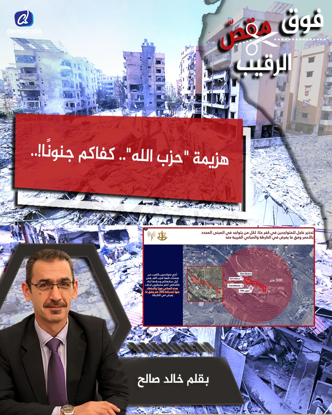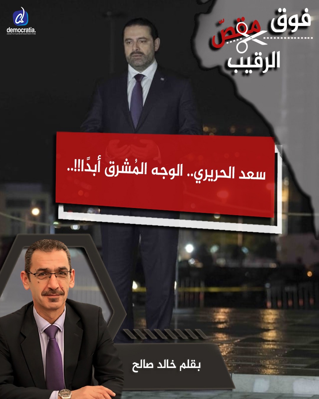 فوق مقص الرقيب سعد الحريري .. “صولجان القيادة”أعطي له !! للمزيد » Democratia News 27/01/2026 11:32 ص عذرًا شيخ نعيم .. رقبتكم وليسرقبتنا !! للمزيد » Democratia News 20/01/2026 1:37 م هزيمة “حزب الله” .. كفاكم جنونًا !! للمزيد » Democratia News 17/01/2026 3:07 م “السّنّة” في لبنان .. زبدة الكلام !! للمزيد » Democratia News 10/01/2026 1:04 م سعد الحريري .. الوجه المُشرق أبدا !! للمزيد » Democratia News 06/01/2026 1:30 م “واقع أبو عمر دهاء” و “رضاالسياسيين غباء” للمزيد » Democratia News 27/12/2025 12:50 م « Previous Page1 Page2 Page3 … Page5 Next »