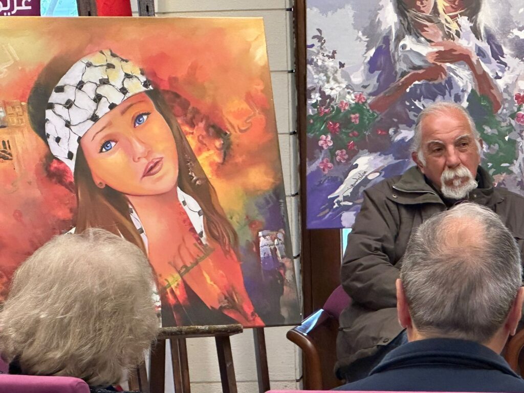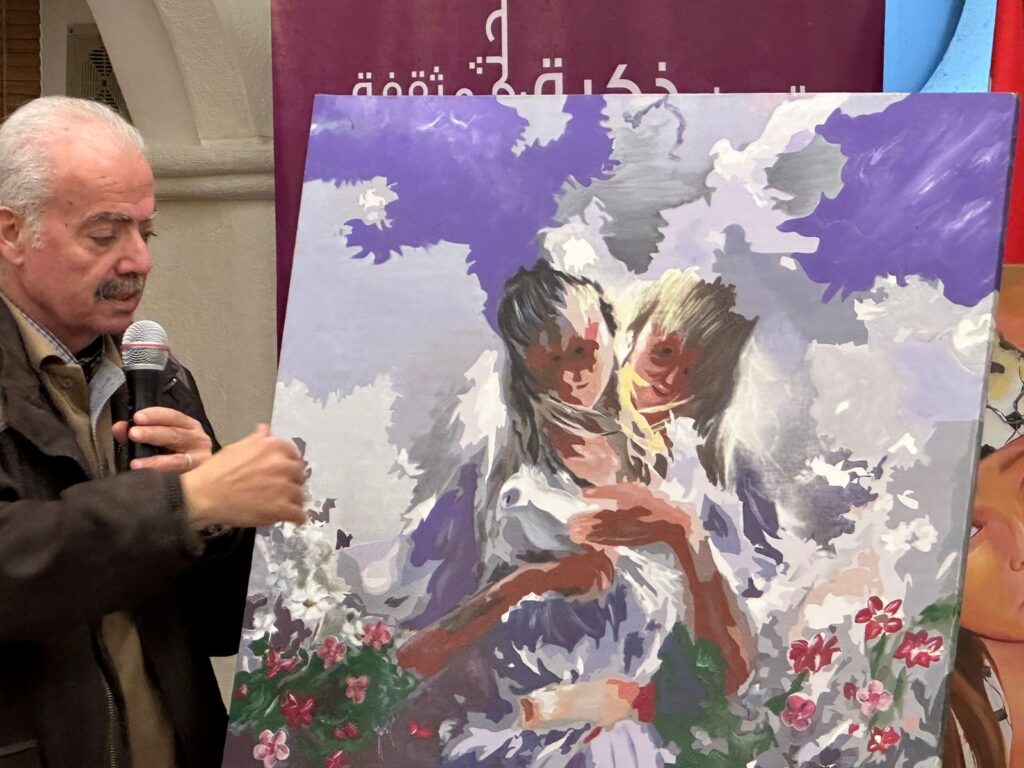 ثمّ عرضَت الدكتورة رويدا الرافعي لوحتها الفنيّة وقد حاكَت فيها فلسطين و نضال أهلها و تناولت فيها أيضا معاني الإستقلال .