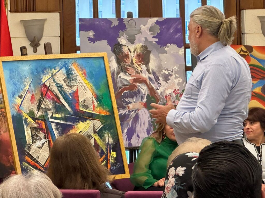 أخيرا الفنانة هدى صباغ شاركَت بلوحة كانت مزيجا بين الشرق والغرب .