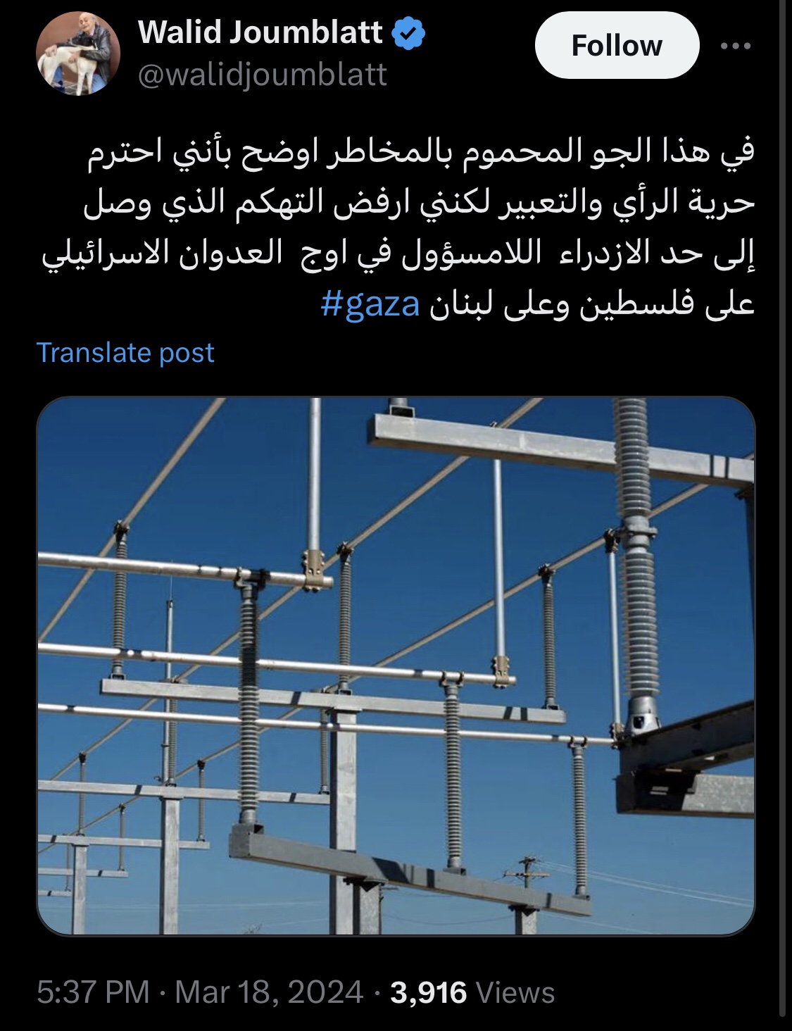 كتب رئيس حزب التقدم الاشتراكي وليد جنبلاط عبر منصة “اكس” التالي: