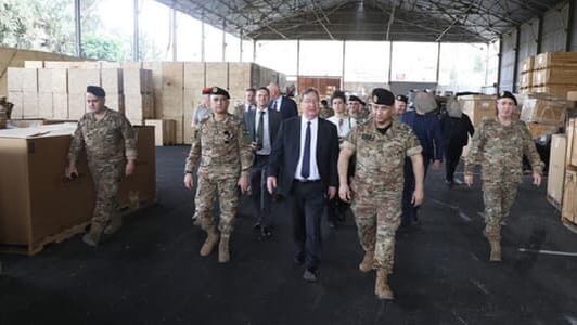 أشرف السفير البريطاني في لبنان هايمش كاول، على تسليم 60 طناً من قطع بدل للآليات والإطارات لآليات عسكرية إلى الجيش اللبناني في ثكنة اللواء اللوجستي في كفرشيما.