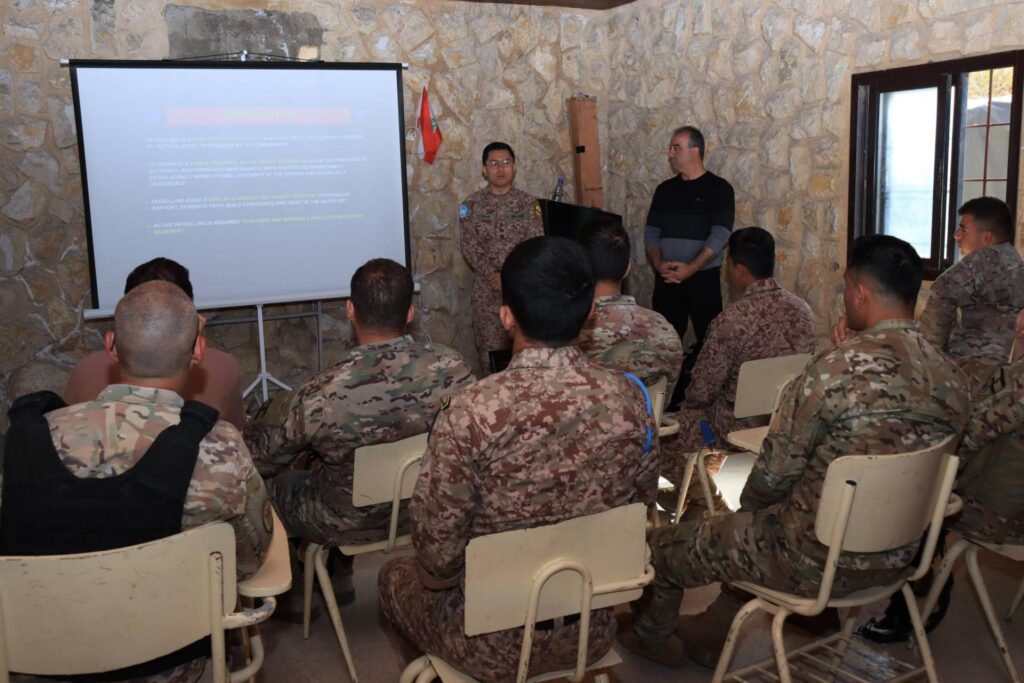 وتلقى المشاركون جلسات عملية ومحاضرات حول الدوريات ونقاط التفتيش والحراسات ومكافحة الحشود والشغب لتعزيز مستوى التشغيل البيني للمهام المنسقة وتحقيق الثقة المتبادلة في إطار قرار الأمم المتحدة رقم 1701.