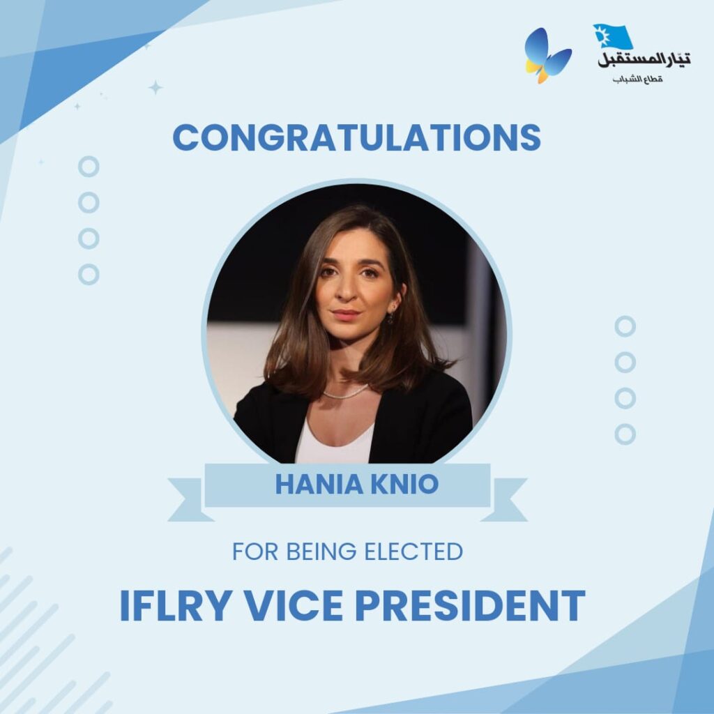 فاز قطاع الشباب في “تيار المستقبل”، عبر مرشحته هانيا كنيعو، بموقع نائب رئيس الاتحاد الدولي للشباب الليبرالي (iflry)، في انتخابات الجمعية العمومية الـ٥٣ المنعقدة حالياً في ساحل العاج، حيث نالت ١٥٩ صوتاً من أصل ١٩٨.