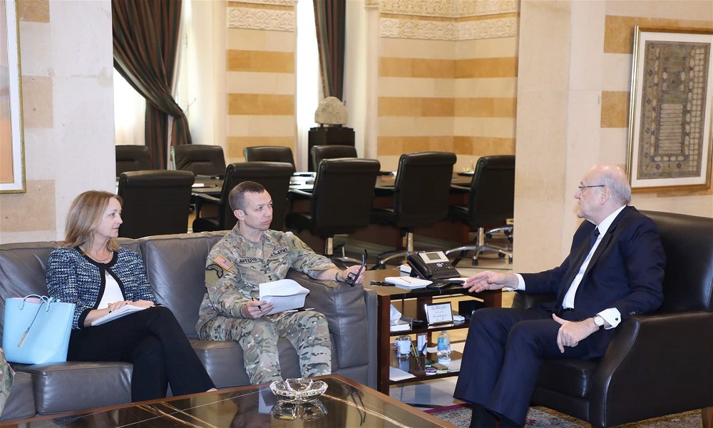 التقى رئيس حكومة تصريف الأعمال نجيب ميقاتي الرئيس المشارك لآلية تنفيذ ومراقبة وقف الأعمال العدائية الجنرال جاسبر جيفرز بعد ظهر اليوم في السرايا في حضور سفيرة الولايات المتحدة الاميركية ليزا جونسون.