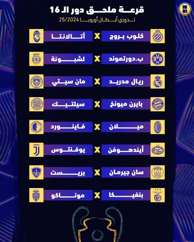 أقيمت اليوم الجمعة، قرعة الملحق المؤهل لثمن نهائي دوري أبطال أوروبا، بعد انتهاء مرحلة الدوري بمشاركة 36 فريقا، الأربعاء الماضي.