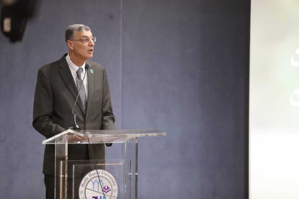 افتُتحت المناسبة بالنشيد الوطني اللبناني، تلاه دقيقة صمت تكريمًا للشهيد. ثم ألقى رئيس الجامعة، الدكتور سعيد لادقي، كلمة شدّد فيها على التزام الحريري بالتعليم وإعادة إعمار الوطن، مشيرًا إلى دوره في اتفاق الطائف وجهوده في إعادة بناء لبنان. وقال: “قيادة الشهيد تجاوزت الانقسامات، وركّزت على بناء الدولة، وتعزيز الحكم، والرعاية الصحية، والإصلاح الاقتصادي، والتعليم، الذي كان في صميم رؤيته، مؤثرًا في حياة الكثيرين، بمن فيهم أنا.”