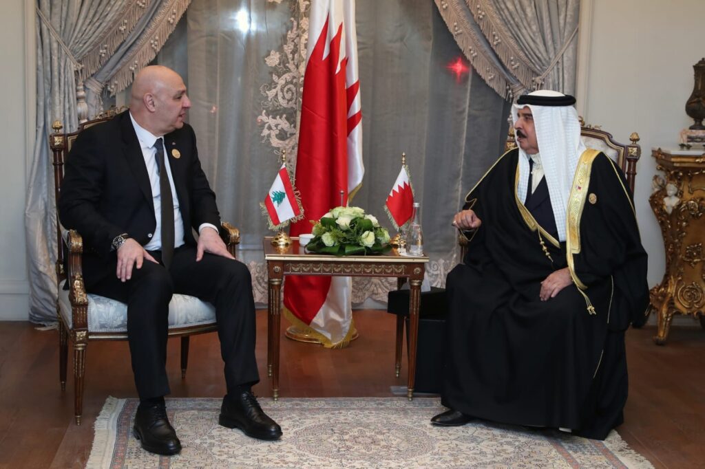 وكان الرئيس عون التقى مساء ايضاً، ملك البحرين حمد بن عيسى آل خليفة، الذي هنأ الرئيس عون بانتخابه، مشيداً بالكلمة التي القاها في القمة، وبعمق العلاقات الأخوية التي تربط البلدين، ومؤكدا وقوف بلاده الى جانب لبنان للنهوض من أزماته الراهنة.