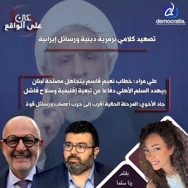 من جهة أخرى يقول رئيس “ائتلاف الديمقراطيين اللبنانيين” جاد الأخوي ان “التصريحات الإيرانية، وزيارة أمين المجلس الأعلى للأمن القومي الإيراني علي لاريجاني، وتهديدات الأمين العام لـ”حزب الله” نعيم قاسم تُظهر محاولة واضحة لإعادة تثبيت النفوذ الإيراني في لبنان، ورفع سقف الخطاب دفاعًا عن سلاح “حزب الله”. هذه التطورات تحمل رسائل ردع وضغط أكثر مما هي خطة فورية لصدام داخلي، لكنها في الوقت نفسه تغذّي الانقسام السياسي والطائفي وتزيد مستوى التوتر. الخطر على السلم الأهلي ليس آنياً، لكنه قائم إذا ترافق هذا التصعيد الكلامي مع حادث أمني كبير أو تحركات ميدانية غير منضبطة، خصوصاً في ظل هشاشة الوضع الاقتصادي والأمني”.