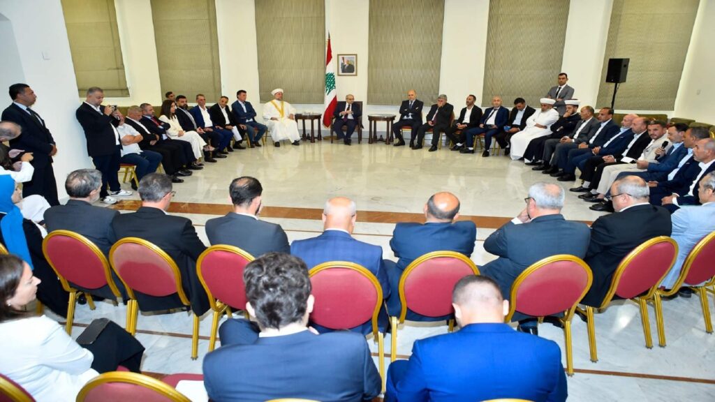استقبل رئيس مجلس الوزراء نواف سلام في السراي الحكومي وفداً موسعاً من قرى منطقة جبل أكروم – عكار، ضمّ رؤساء بلديات وفعاليات دينية وعسكرية واجتماعية.