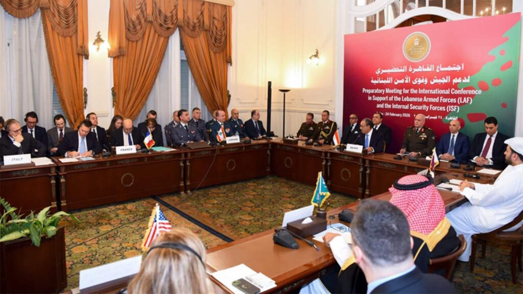 شارك قائد الجيش العماد رودولف هيكل والمدير العام لقوى الأمن الداخلي اللواء رائد عبد الله بتاريخ 24 /02 /2026، في اجتماع القاهرة التحضيري للمؤتمر الدولي لدعم الجيش وقوى الأمن الداخلي بدعوة من جمهورية مصر العربية، وبحضور وزير الخارجية والتعاون الدولي والمصريين بالخارج بدر عبد العاطي، وممثلي دول اللجنة الخماسية المعنية بلبنان ومن بينهم: مستشار وزير الخارجية السعودي الأمير يزيد بن فرحان، الموفد الفرنسي الوزير السابق جان إيف لودريان، وزير الدولة في وزارة الخارجية القطرية محمد بن عبد العزيز الخليفي، إضافة إلى وفد ممثل عن الولايات المتحدة الأميركية، والأمين العام المساعد لجامعة الدول العربية حسام زكي، والمنسقة الخاصة للأمم المتحدة في لبنان Jeanine Hennis – Plasschaert، وممثلين عن: اللجنة العسكرية التقنية من أجل لبنان (MTC4L)، لجنة الإشراف على اتفاق وقف الأعمال العدائية (Mechanism)، قوة الأمم المتحدة الموقتة في لبنان – اليونيفيل.