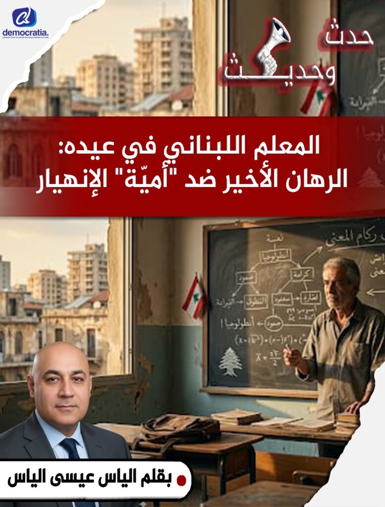 في عيده، ننحني للإنسان القابع خلف المهنة، ذاك الذي لا يزال يؤمن أن قيامة لبنان لا تبدأ من ركام السياسة، بل من مقعد الدراسة، وتنتهي عند الوعي الوطني الشامل.